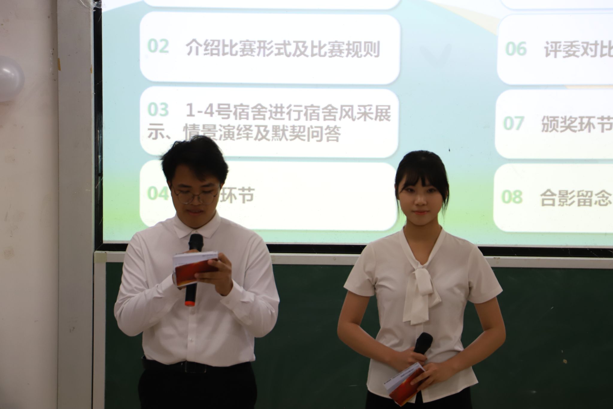 参赛宿舍依次登台,通过宿舍风采展示、情景演绎、默契问答三个环节全方位亮相。参赛宿舍展现了各具特色的宿舍文化,但“互爱互助”的核心底色始终不变。在互动环节中,主持人围绕室友互助主题向现场观众提问,大家的精彩回答印证了同学们之间深厚的友爱之情。评委李双玲老师对本次大赛进行总结点评,她肯定了赛事整体达到的预期效果,比赛过程中细微之处提出中肯建议,期待后续活动持续优化、越办越好。