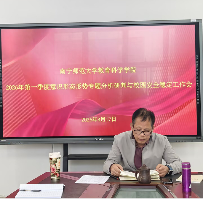 为切实筑牢学院意识形态阵地,守住校园安全稳定底线。3月17日下午,教育科学学院党委在五合校区理楼1004-1会议室召开第一季度意识形态形势专题分析研判与校园安全稳定工作会。会议由学院党委书记余朝文主持,支部书记及部分支委代表参加会议。