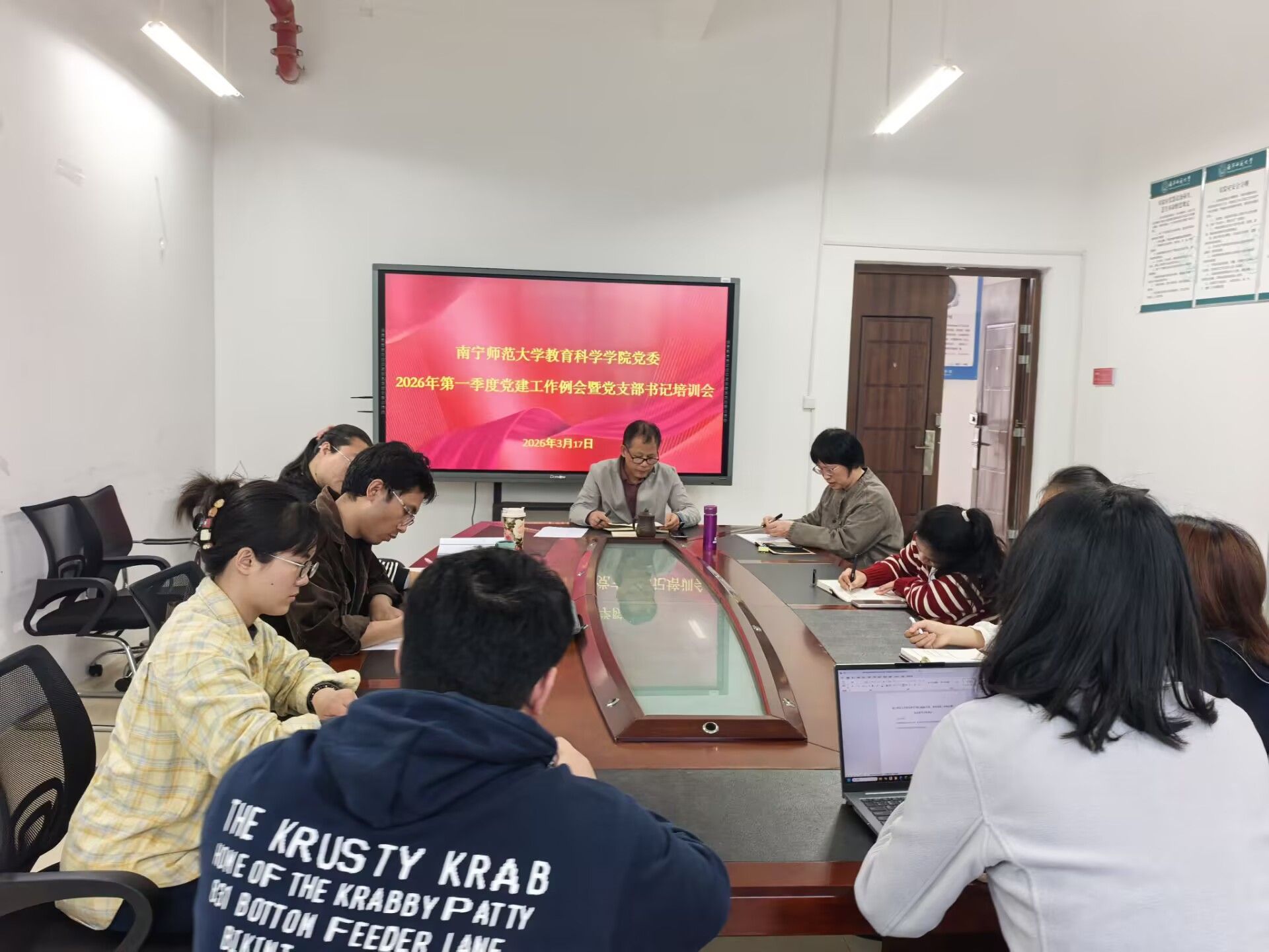 为进一步夯实基层党建工作基础,提升党支部书记履职能力,推动学院党建工作与业务工作深度融合、提质增效。3月17日下午,教育科学学院党委在五合校区理楼1004-1会议室召开2026年第一季度党建工作例会暨党支部书记培训会。会议由学院党委书记余朝文主持,支部书记及部分支委代表参加会议。